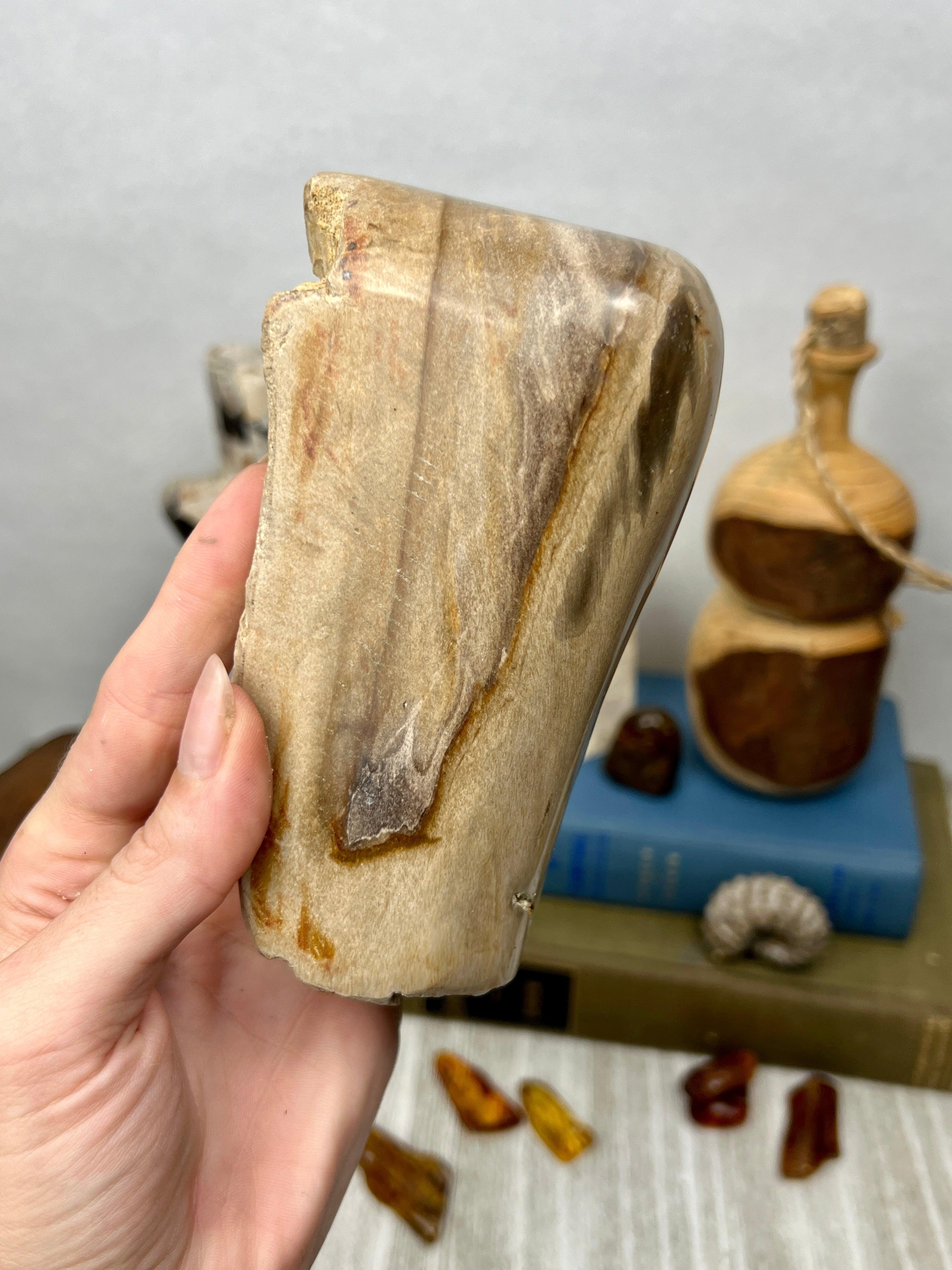 Stunning Petrified Wood Display Specimen with Raw, Natural edges and polished face to show the inner and outer beauty.