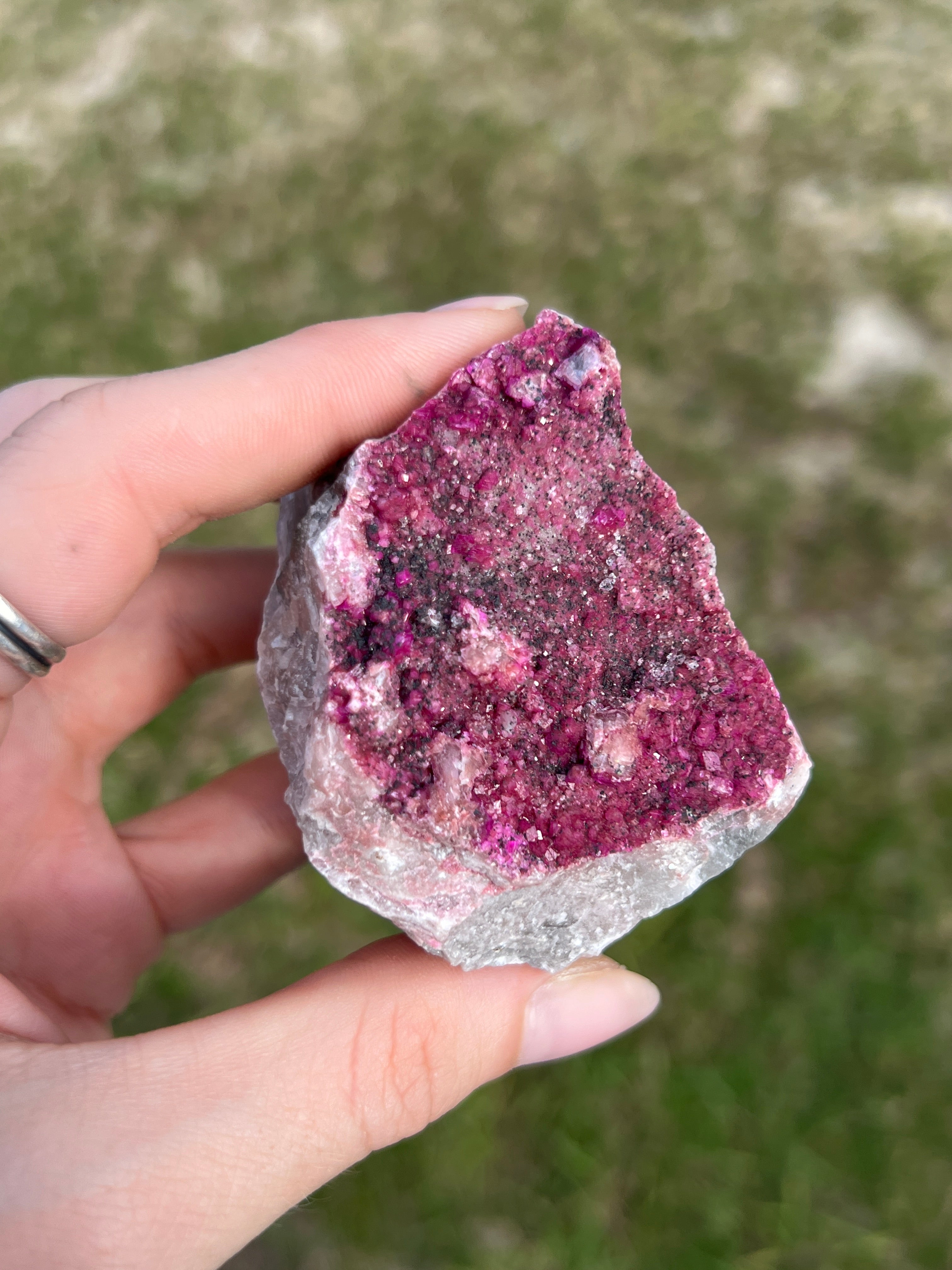 In the metaphysical and crystal healing communities, Cobaltoan Calcite is known as a stone of love and positivity. It is believed to encourage feelings of compassion, empathy, and unconditional love, making it a popular choice for fostering deeper relationships and emotional healing. The bright pink color resonates with the heart chakra, promoting emotional balance, and helping to dispel feelings of anxiety and negativity. It's also said to enhance communication and connection with the spiritual realm, aiding in the manifestation of dreams and desires.